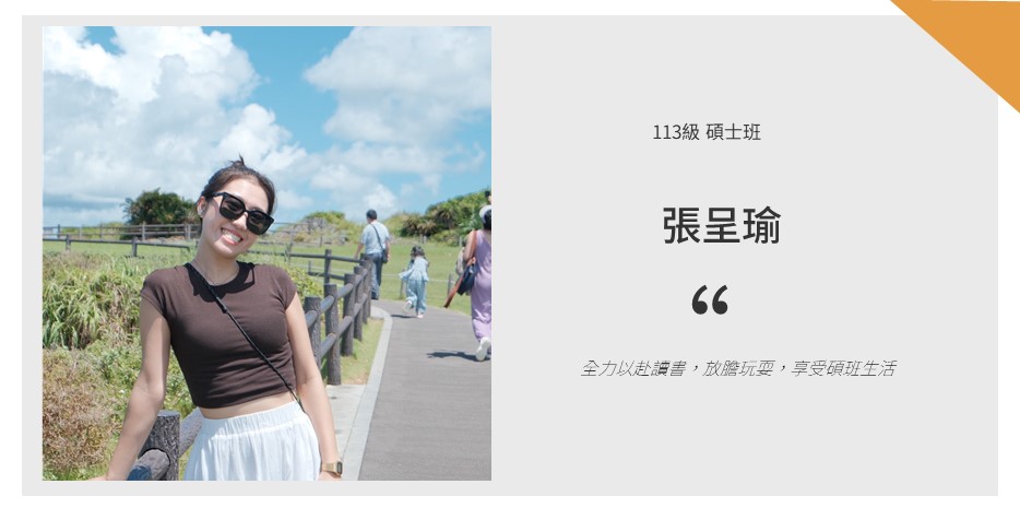 和大學時期最大的不同之處,是在休旅所的學習過程中,我更懂得 「#交朋友」的重要,不只是建立人際關係,而是能在與同學、師長的互動中,學習待人處事的方法。同時,我也更懂得把握機會,無論是課堂上的分組合作或是與業界、校外資源的接觸等等,都讓我體會到 #主動爭取的重要性。這些經驗不僅拓展了我的人脈,也讓我在解決問題、協調合作以及自我表達方面都有很大的成長。每位教授的教學模式都有所不同,但相同的是,從他們的課堂中你都能獲得許多對未來撰寫論文非常有幫助的知識與方法。