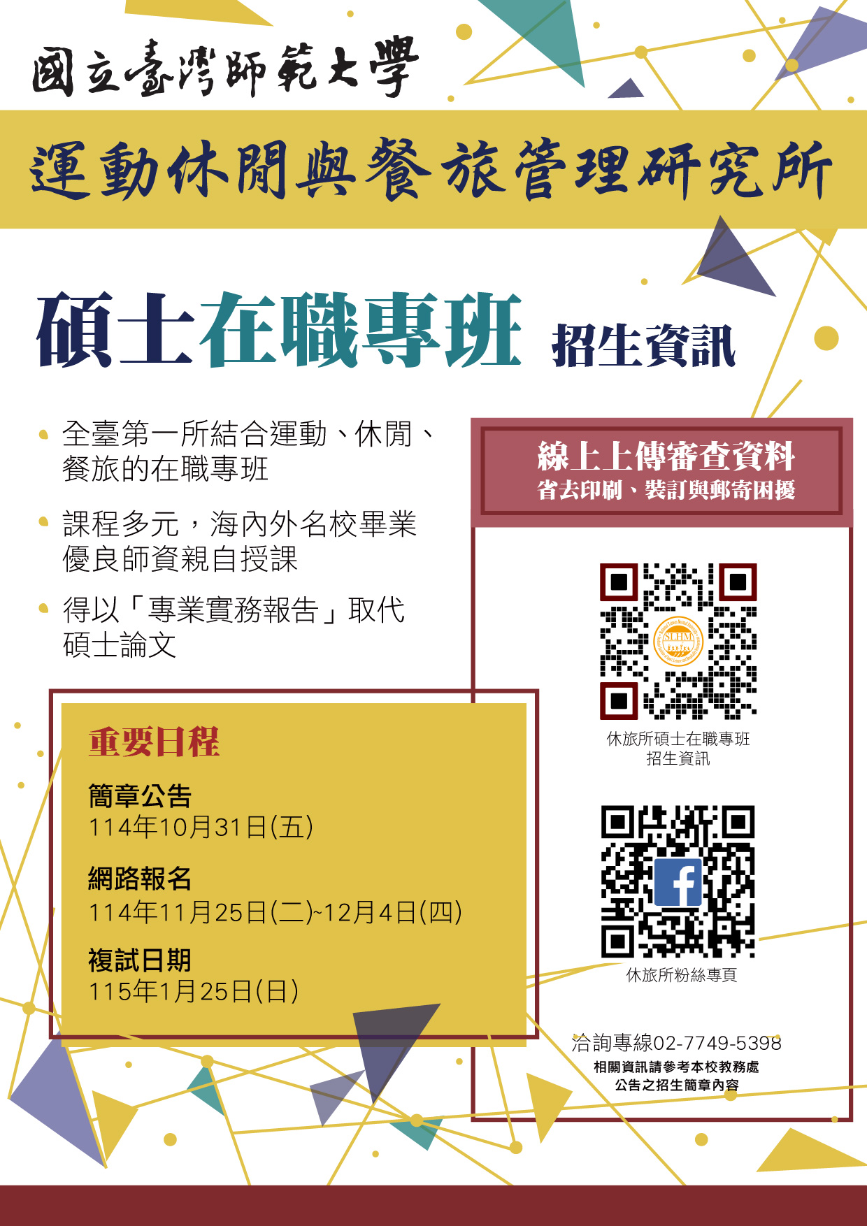 【招生資訊】115學年度「碩士在職專班」招生簡章