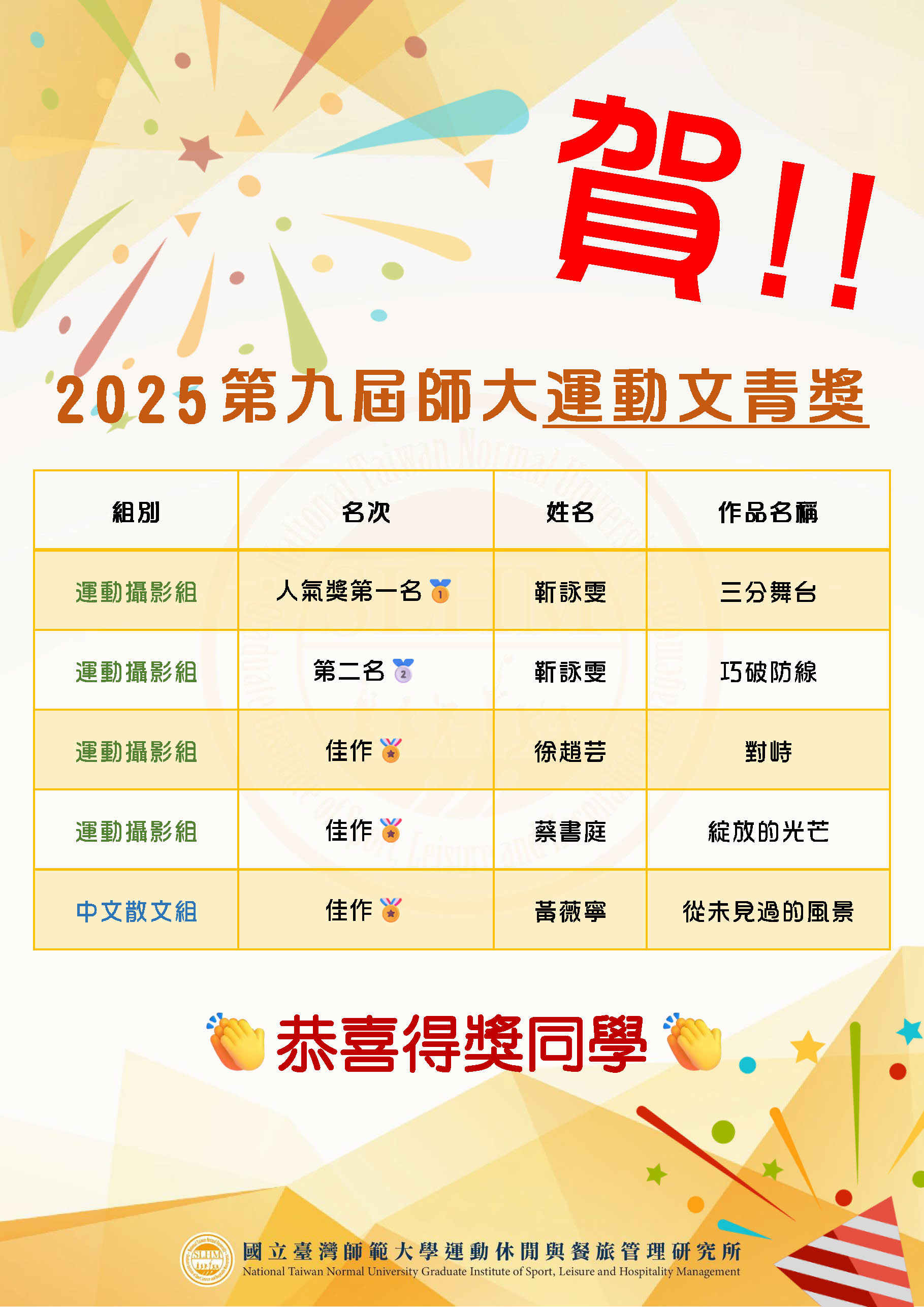 【共好時間】2025第九屆師大運動文青獎 - 休旅所得獎名單
